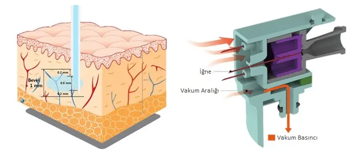 5’li veya 9’lu çoklu iğne sistemine sahip Vital Injector 2, şırınga tipini, İlaç dozajını, iğne penetrasyon derinliğini ve enjeksiyon hızını ayarlayarak güvenli ve doğru tedaviler sağlar. 0,2 mm'lik artışlarla 0 mm'den 5 mm'ye kontrollü derinlik ayarı, çoğu kolajen ve elastinin bulunduğu deri altı bölgesini hassas bir şekilde hedefleyen özel bir tedaviye olanak tanır. Farklı viskozite formülasyonları ile çalışabilme imkanı sunmaktadır. Ayrıca kullanışlı akustik alarm sinyali ile kolayca kullanılmaktadır.