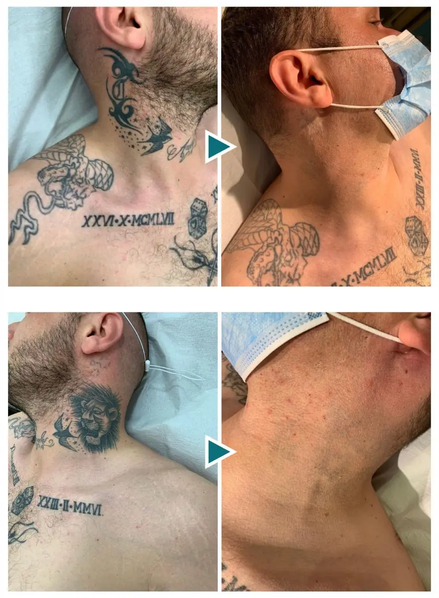 Dövmelerin Silinmesi: En inatçı yeşil, kırmızı ve sarı mürekkep dahil olmak üzere tüm dövme renklerinin çıkarılması. Pikosaniye atışları, o kadar hızlıdır ki, basınçta bir değişiklik, mürekkebi küçük toz benzeri parçacıklara ayrılmasına neden olmaktadır. Bu küçük parçacıklar daha sonra vücudunuzun bağışıklık sisteminin kritik bir parçası olan lenfatik sistem tarafından emilir ve doğal olarak elimine edilir.