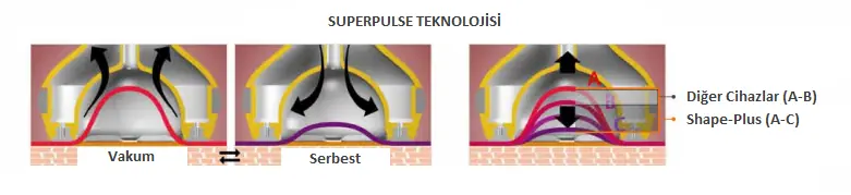 Shape-Plus, RF, Kavitasyon, Vakum ve LED kombinasyonu yoluyla zayıflama ve cilt sıkılaştırma teknolojilerinin evrimidir. Yeni patentli teknoloji SuperPulse ve Vakum ile kayma hareketini kullanarak, selülit azaltma ve vücudu yeniden şekillendirme, göz ve boyun kaldırma işlemlerini ağrısız, etkili ve tamamen güvenli şekilde sunmaktadır.